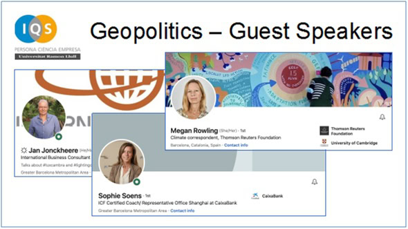 Still at the Ramon Llull University in Barcelona, at the IQS School of Management we started a new course called ‘Geopolitics’, for the students of the Bachelor in International Business, with a strong presence of foreign students.